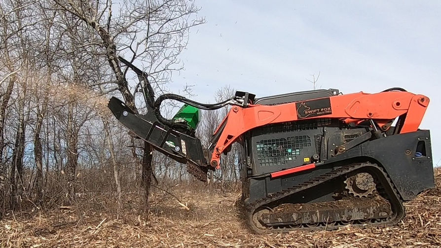 Clear brush and trees with your high flow skid steer and mulcher head.