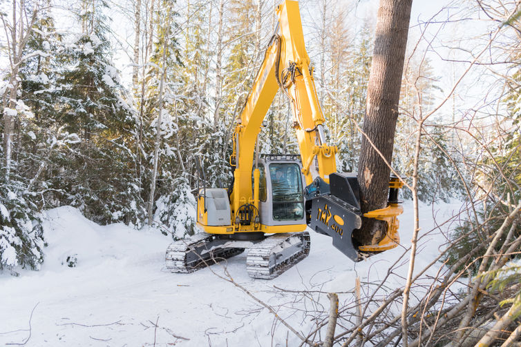 TMK 400 is the largest and strongest shear in the current product family. TMK 400 was developed to cut down Central Europe's big trees. The TMK 400 weighs 535 kg (1280 lbs) and has an 18" blade. It is recommended for use on 10 - 30 ton excavators, the largest skid steers, wheel loaders etc.